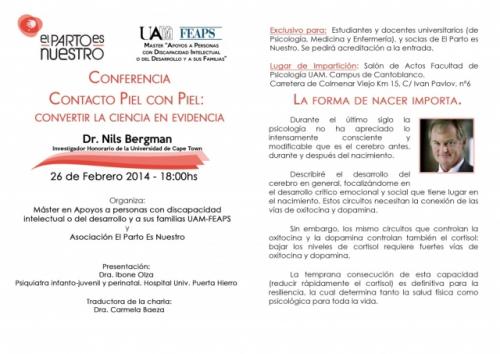 Charla del Dr. Nils Bergman en la Universidad Autónoma de Madrid, organizado por El Parto es Nuestro, el 26 de febrero de 2014