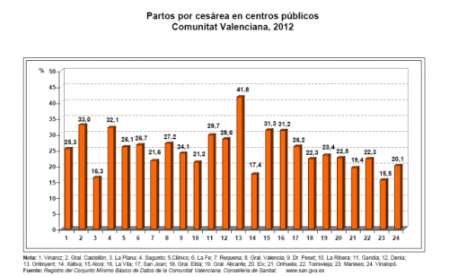 Consulta en estos gráficos las tasas de cesáreas de todos los hospitales de la Comunidad Valenciana, privados y públicos:
