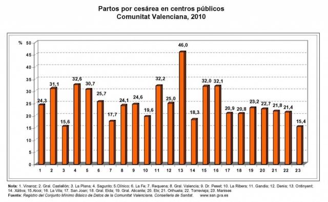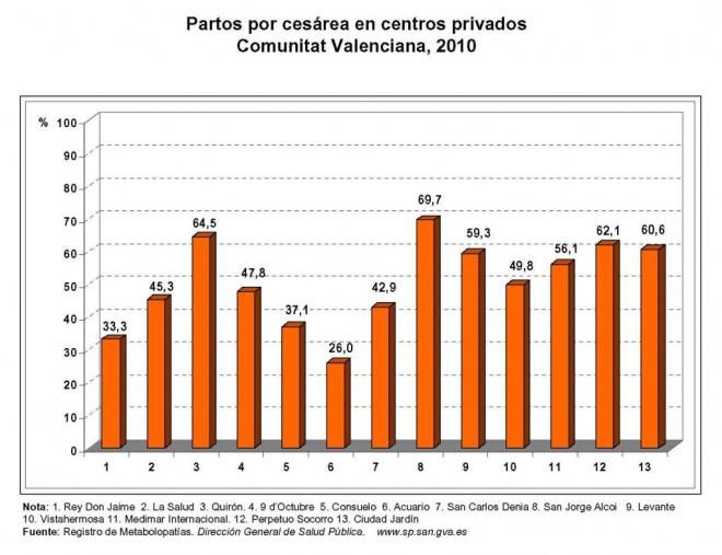 Mientras que en la sanidad pública comienza un leve descenso, en la sanidad privada continua en alza. Sobre la privada es muy difícil saber nada a nivel nacional ya que hay muy pocos datos. Sin embargo, tenemos datos de la Comunidad Valenciana, que muestran claramente que en la sanidad privada se realizan más inducciones, partos instrumentales y cesáreas que la sanidad pública.