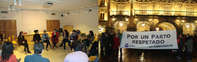 Fue un día realmente memorable en Salamanca, con eventos varios. Comenzamos por la mañana con una mesa informativa junto al hospital de Salamanca, repartiendo folletos y respondiendo a todo tipo de preguntas. Pasó muchísima gente, embarazadas y también mucho personal sanitario. La reacción general fue de asombro "¿Pero de verdad se hace esto?"