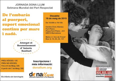 Equipo Blog • 1 Mayo 2015 • 0 SMPR 2015: jornada de Dona llum Dona llum Semana Mundial del Parto… Cuerpo de texto Nuestra asociación hermana en Cataluña, Dona llum, ha preparado esta interesante jornada para celebrar la Semana mundial del parto respetado 2015. Tendrá lugar el sábado 16 de mayo en Barcelona y este es el programa: 10h Rebuda 10:20 h Presentació de la jornada Sra. Albània…